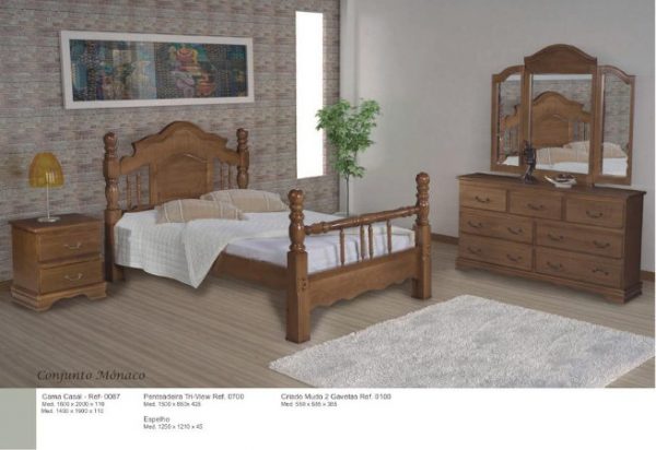 DESCRIÇÃO: A CAMA CASAL MONACO QUEEN É UMA EXCELENTE CAMA, BONITA E REFORÇADA COM SUAS BITOLAS LATERIAS NA PESEIRA E CABECEIRA DE 11 CM X 11 CM. NO TAMANHO QUEEN, PARA COLCHÃO DE 1,58 DE LARGURA, ALEM DISSO ESTA CAMA É PRODUZIDA EM ESTILO COLONIAL E MADEIRA DE REFLORESTAMENTO, BIOMÓVEL, ESTE PRODUTO FOI IDEALIZADO PARA EXPORTAÇÃO POREM ESTAMOS VENDENDO NO MERCADO INTERNO, ALEM DE TODAS ESTAS QUALIDADES ELA AINDA É FABRICADA EM 4 OPÇÕES DE CORES , E TEM MAIS , ACOMPANHA UM PÉ CENTRAL PARA MAIOR SEGURANÇA .