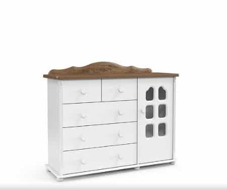 EXCLUSIVO SISTEMA ANTITOMBAMENTO; 100% MDF; CORREDIÇAS TELESCÓPICAS; PUXADORES E PÉS COM DETALHE PROVENÇAL; TAMPO EM 27MM; CABIDEIRO EM ALUMÍNIO; PORTA COM DETALHE EM ACRÍLICO