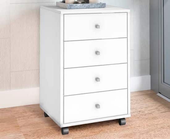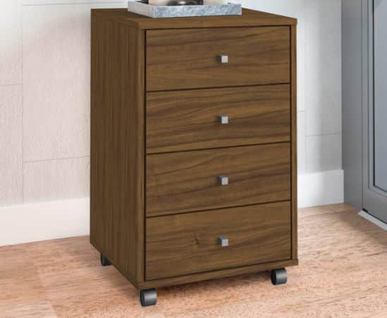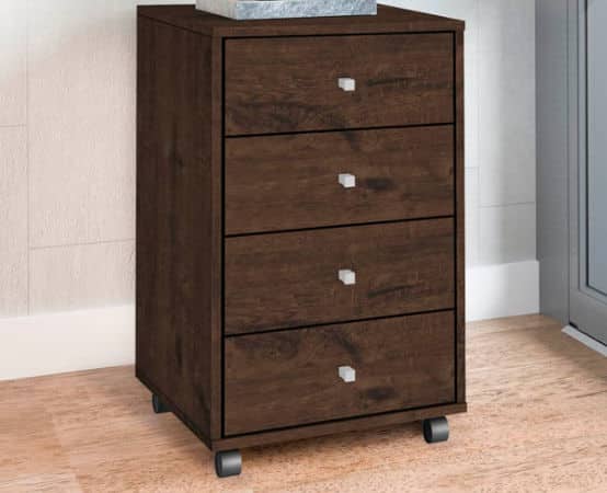 O gaveteiro Intelectual possui gavetas com corrediças metálicas, sistema de montagem das gavetas com cavilhas e minifix.