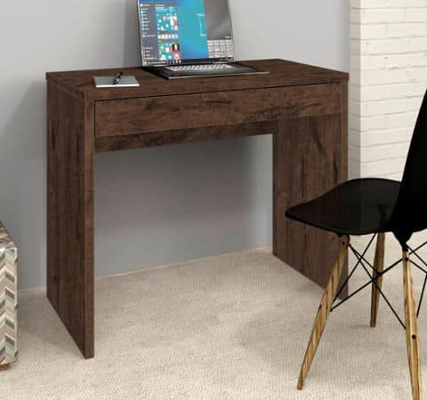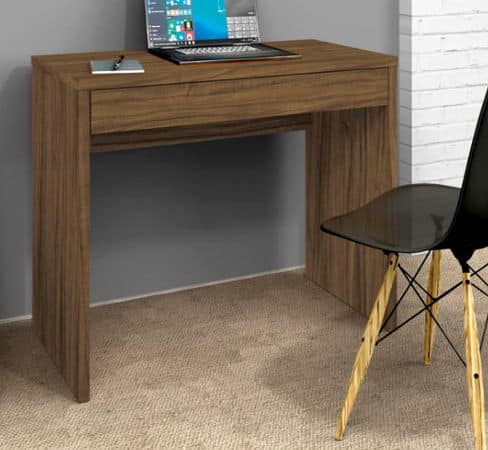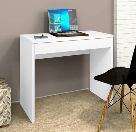 A escrivaninha Slim possui gaveta com travamento no fundo e corrediças telescópicas.