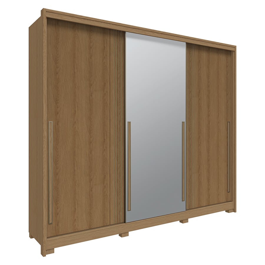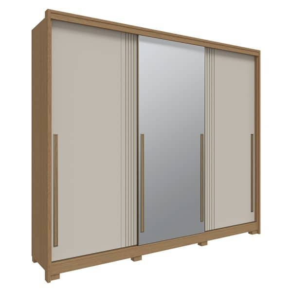 DESCRIÇÃO: O GUARDA-ROUPAS NEW GUARAPARI É PRODUZIDO 100% EM MDF E TEM 3 PORTAS DESLIZANTES COM ESPELHO CENTRAL , 6 GAVETAS COM FRENTE USINADA E CORREDIÇAS TELESCÓPICAS, CABIDEIROS E CALCEIROS METÁLICOS E PUXADOR EM ALUMINIO