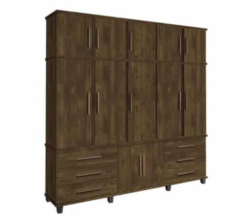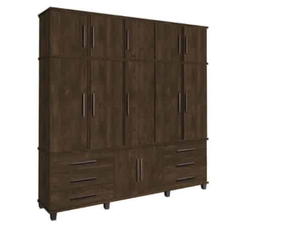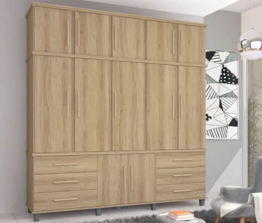 DESCRIÇÃO: O ROUPEIRO PRISMA DE 5 PORTAS É TRIPLEX, OU SEJA, SÃO 3 PARTES, MALEIRO, PARTE DO MEIO E 6 GAVETAS PROFUNDAS COM CORREDIÇAS TELESCÓPICAS. A SAPATEIRA POSSUI PRATELEIRA PARA MELHOR ORGANIZAÇÃO