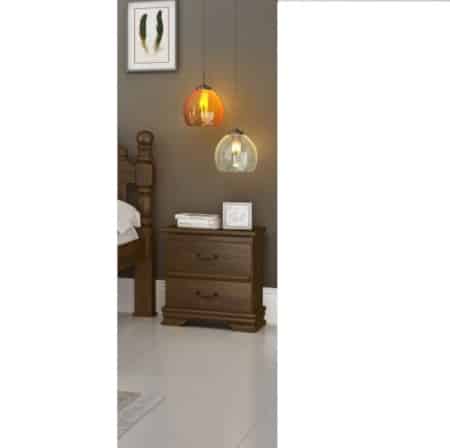 DESCRIÇÃO: A MESA DE CABECEIRA ELIANE TEM 2 GAVETAS POSSUI TAMPO CHANFRADO, CORREDIÇAS DE METAL E PUXADOR DAS GAVETAS EM LATÃO ENVELHECIDO. CRIADO PRODUZIDA EM ESTILO COLONIAL E MADEIRA DE REFLORESTAMENTO, BIOMÓVEL