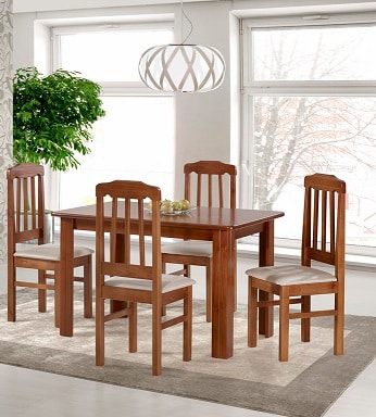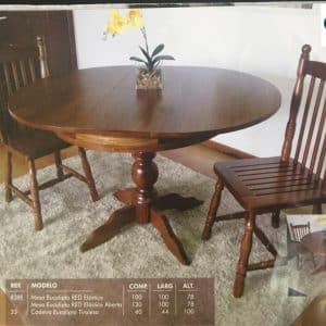 DESCRIÇÃO: MESA 120 NR COM 4 CADEIRAS, FABRICADA COM O TAMPO EM MADEIRA MEDINDO 1,20 CM X 80 CM. AS CADEIRAS ATLANTA SÃO FABRICADAS EM MADEIRA COM ASSENTO ESTOFADO EM TECIDO E OS ENCOSTOS EM MADEIRA.