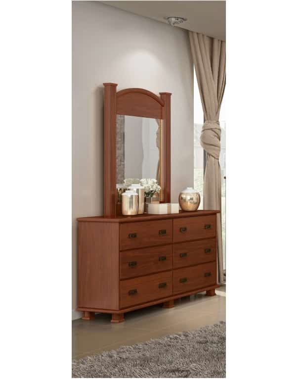 DESCRIÇÃO: A PENTEADEIRA ITÁLIA 6 GAVETAS POSSUI TAMPO CHANFRADO, CORREDIÇAS DE METAL E PUXADOR DAS GAVETAS EM LATÃO ENVELHECIDO. CÔMODA PRODUZIDA EM ESTILO COLONIAL E MADEIRA DE REFLORESTAMENTO, BIOMÓVEL