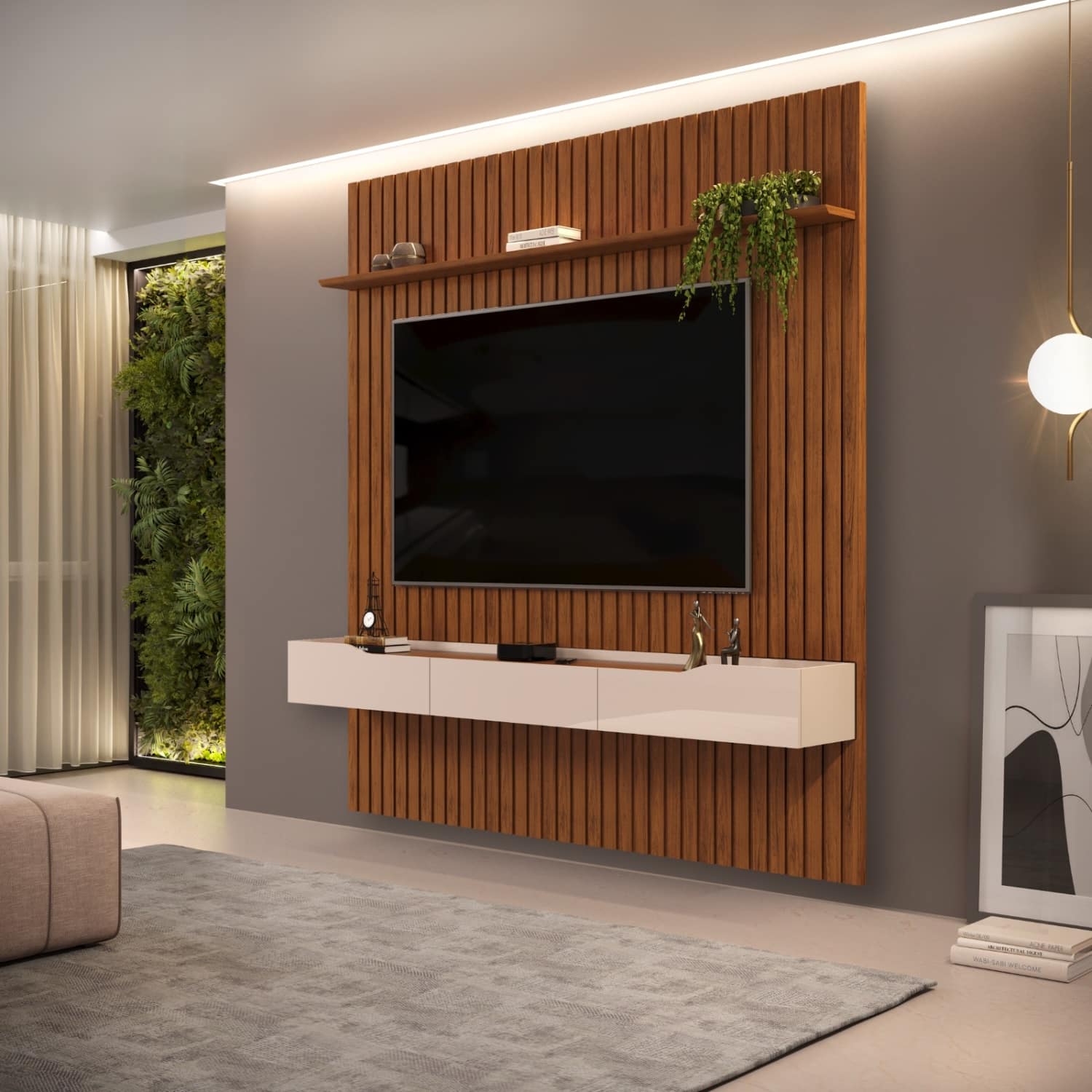DESCRIÇÃO: IMAGINE O PAINEL RIPADO E BANCADA ´PRATIC CEDRO 250 EM SUA CASA. A BELEZA E A UTILIDADE FARÃO DO PAINEL RIPADO E BANCADA PRATIC CEDRO 250 O DESTAQUE DA SUA SALA. PRODUZIDA COM PAINEIS DE 15 MM 100 % EM MDF, AS GAVETAS SÃO COM AS FRENTES USINADAS E AS PRATELEIRAS COM AS BORDAS CHANFRADAS. ACOMPANHA LED NAS LATERIAS. ESTE MESMO MODELO TAMBEM FAZ EM OUTROS TAMANHOS, VEJA EM NOSSO CATALOGO OS OUTROS TAMANHOS.